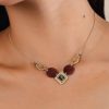 Le collier court 5 éléments Franck Herval combine élégamment des motifs géométriques en laiton doré à l’or fin 18K et des disques en nacre grenat, rehaussés par un délicat losange tissé de perles multicolores. L’équilibre entre formes ajourées et pierres fines apporte une touche raffinée et moderne. Ce bijou, parfait pour sublimer vos tenues, illustre le savoir-faire artisanal de la marque tout en incarnant une sophistication colorée.